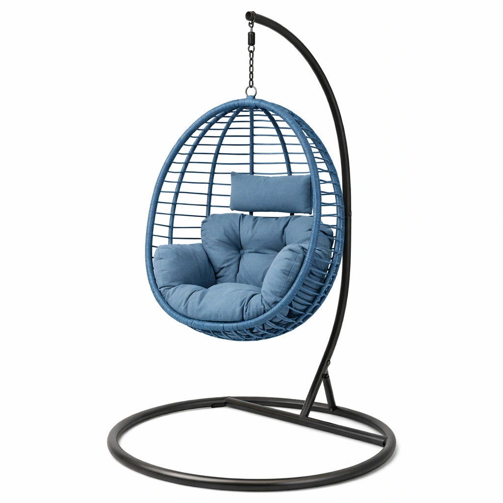 Incluye: 1 silla colgante, 1 estructura, 1 cojín de asiento, 1 cojín de respaldo.
