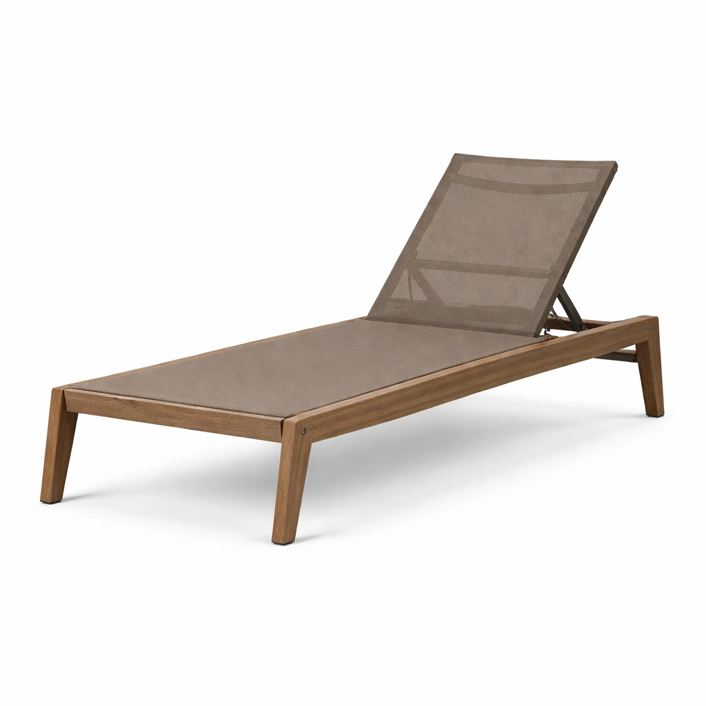 Material: Estructura de madera de teca, asiento de textileno.